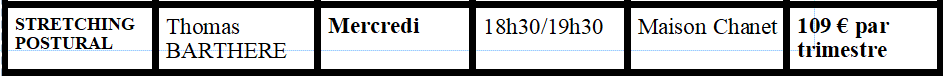 Stretching postural Le stretching postural, renforcement musculaire et équilibre est dispensée par Thomas BARTHERE.